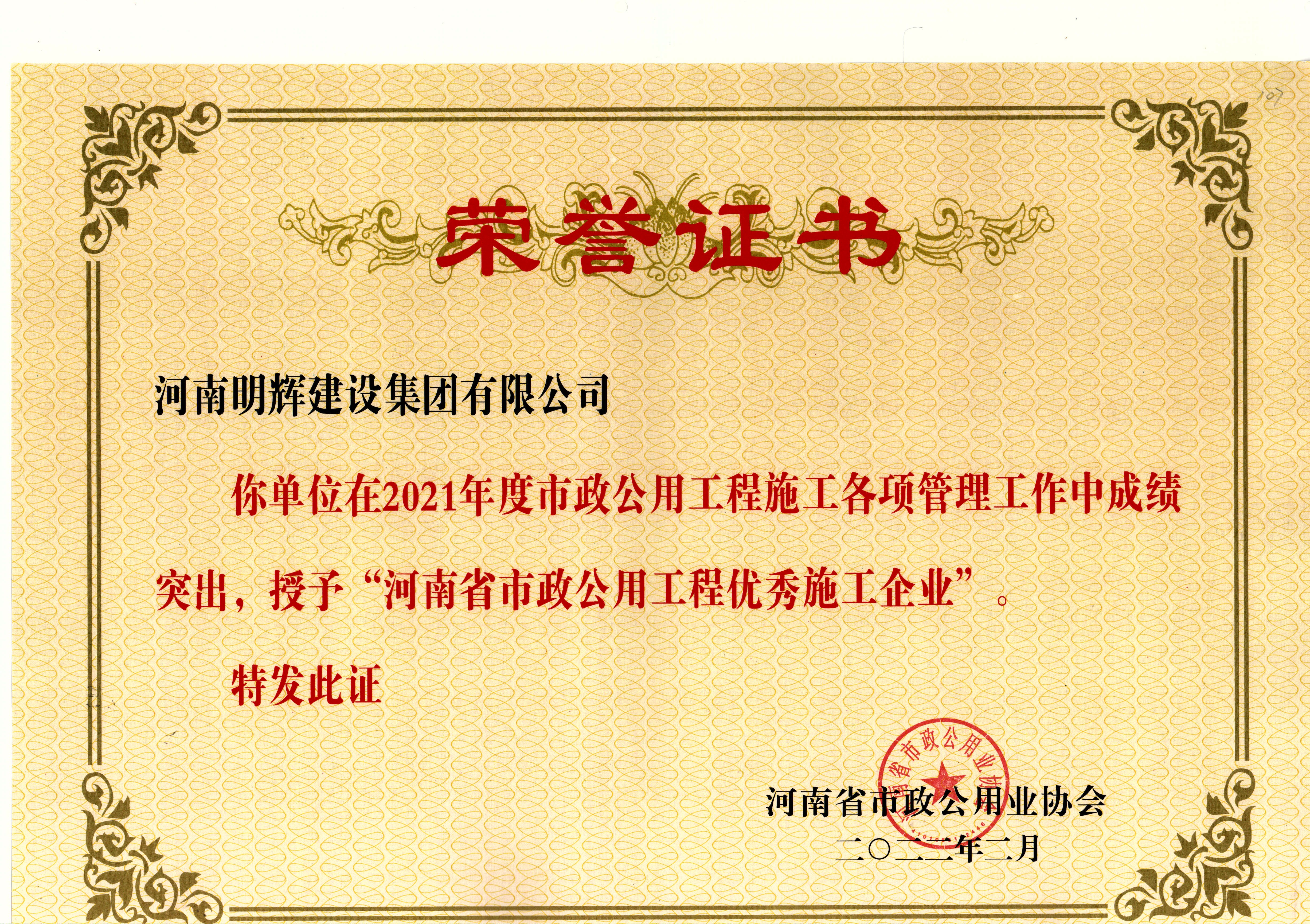 河南省市政公用工程优秀施工企业